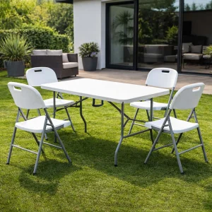 Combo Terraza 5 Piezas Mesa Plegable 180 cm + 4 Sillas Blancas