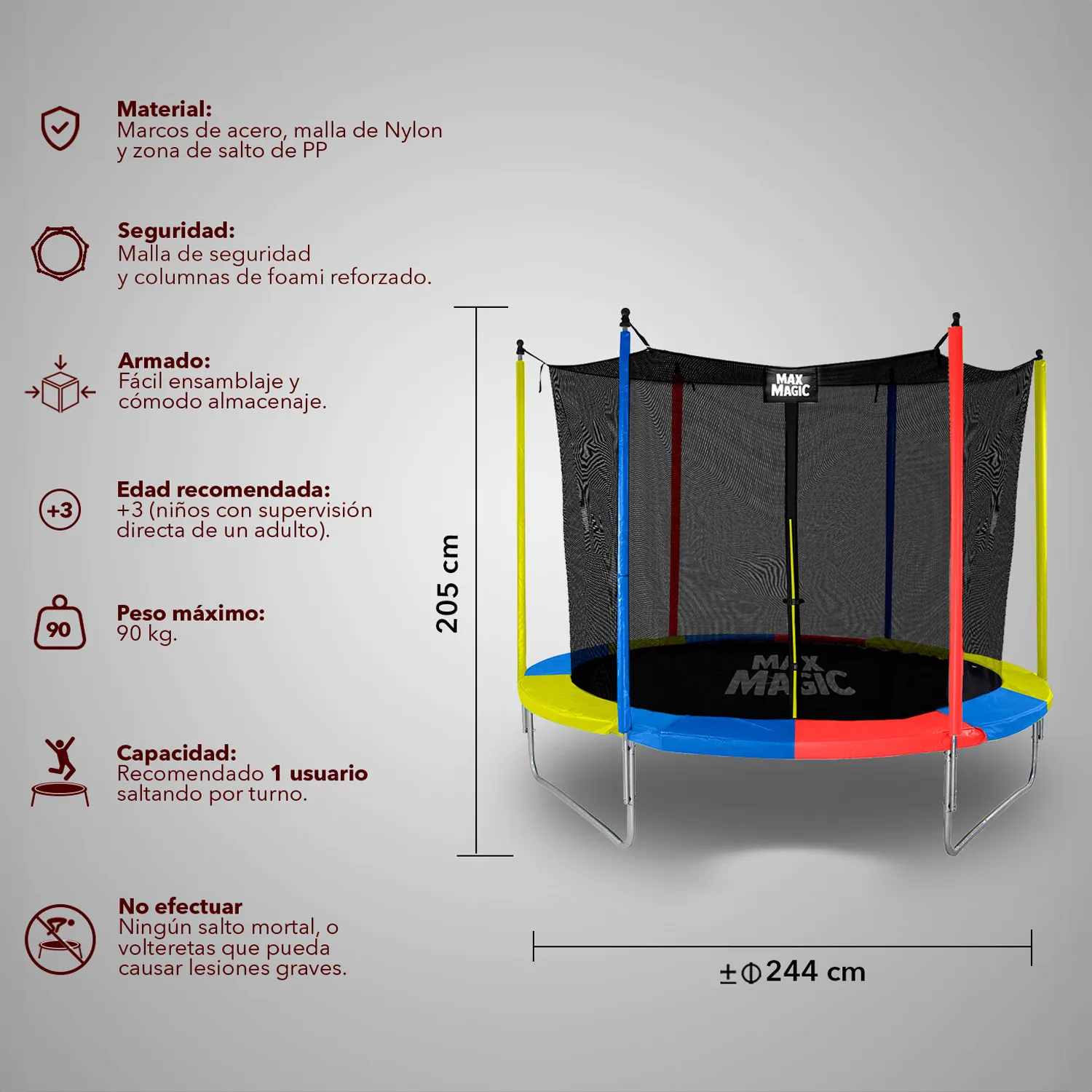 ¡Descubre la máxima entretención para toda la familia y amigos con nuestras increíbles Camas Elásticas! Diseñadas con materiales reforzados de alta calidad, ofrecen seguridad y durabilidad sin igual. ¡Diviértete al máximo sin preocupaciones! Su ensamblaje fácil y rápido te permitirá disfrutar de momentos inolvidables en un abrir y cerrar de ojos.