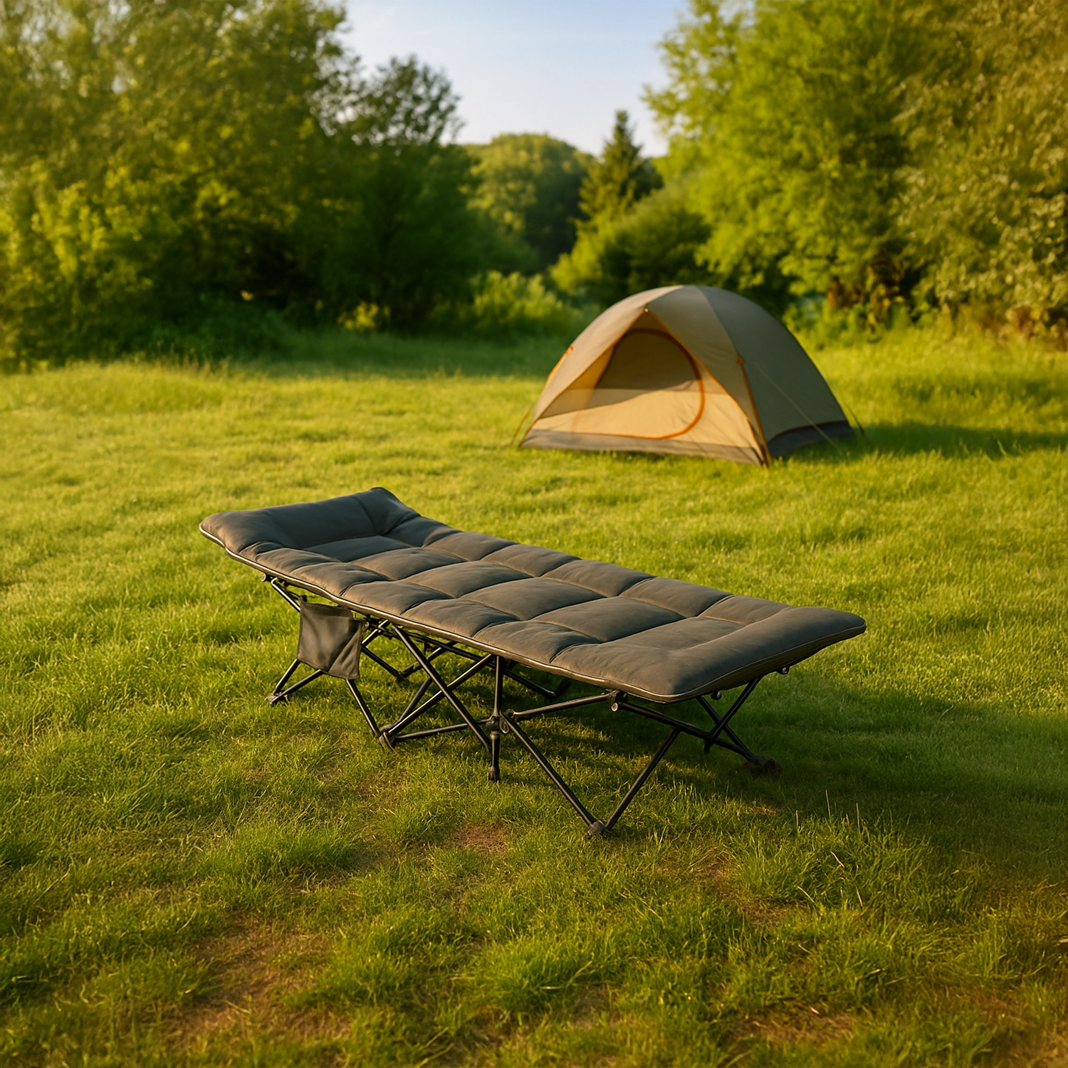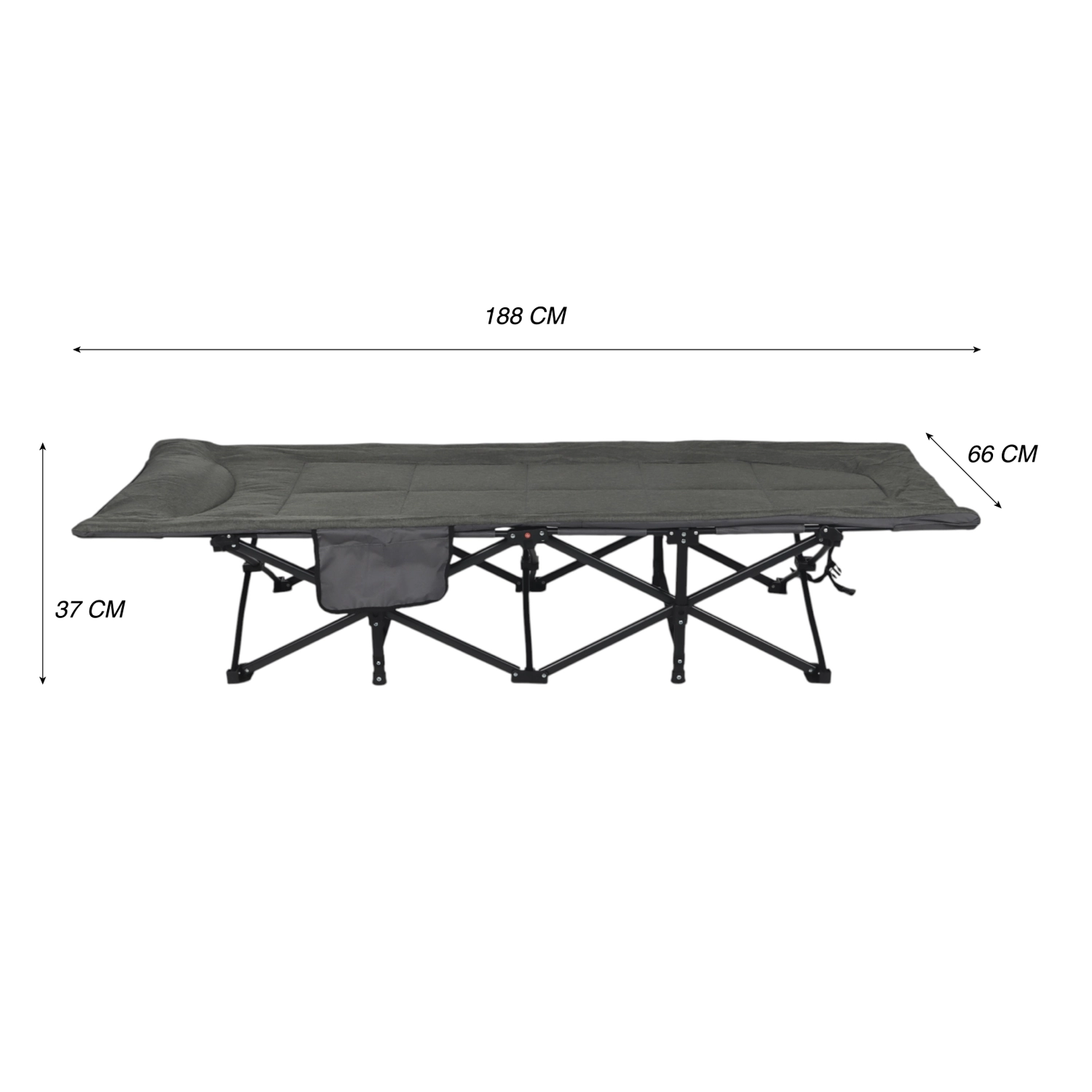 Cama Plegable de Camping Gris, la compañera perfecta para tus aventuras al aire libre durante todo el año. Diseñada para brindar descanso y practicidad, combina una estructura de tubo de hierro resistente con superficie de poliéster 600D, asegurando comodidad y durabilidad en cada uso.
