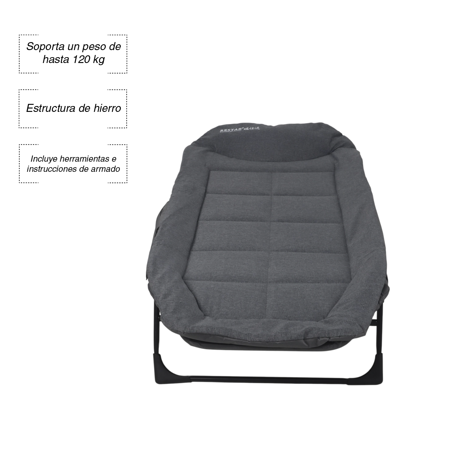 Gracias a su diseño plegable, se arma y guarda con facilidad, ocupando poco espacio. Incluye funda protectora para mantenerla limpia y lista para usar. Su formato compacto y ligero la convierte en la compañera perfecta para camping, viajes o como cama auxiliar en casa.