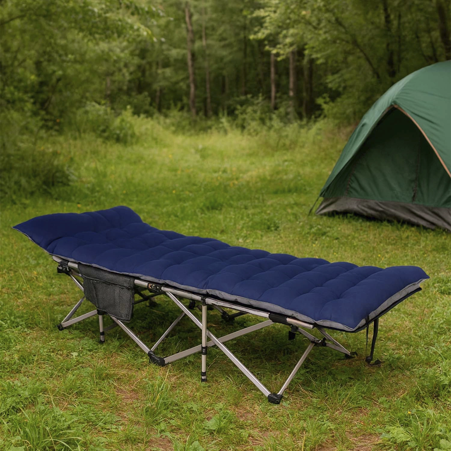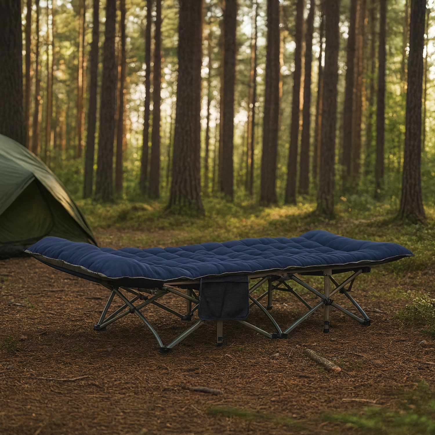 Cama Plegable de Camping, el compañero ideal para tus aventuras al aire libre. Con un diseño práctico y resistente, es perfecta para escapadas de verano, otoño o primavera, asegurando un descanso cómodo en cualquier lugar.