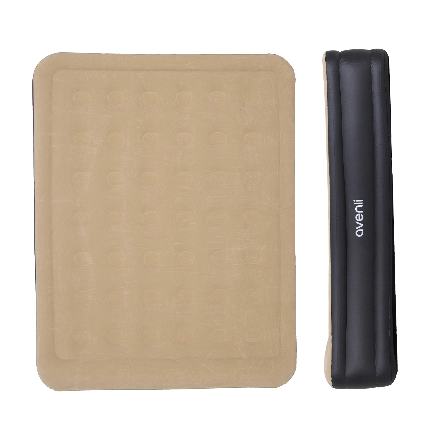 Su superficie flocada es suave al tacto, brindando mayor confort, mientras que la estructura circular superior e inferior aporta firmeza y estabilidad para dormir con seguridad. Con medidas de 203 cm de largo, 157 cm de ancho y 47 cm de alto, este colchón ofrece un nivel elevado similar al de una cama tradicional.