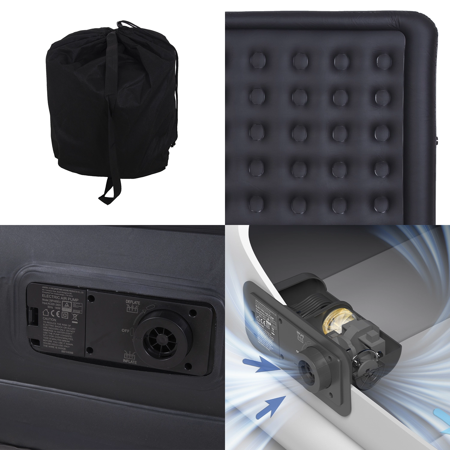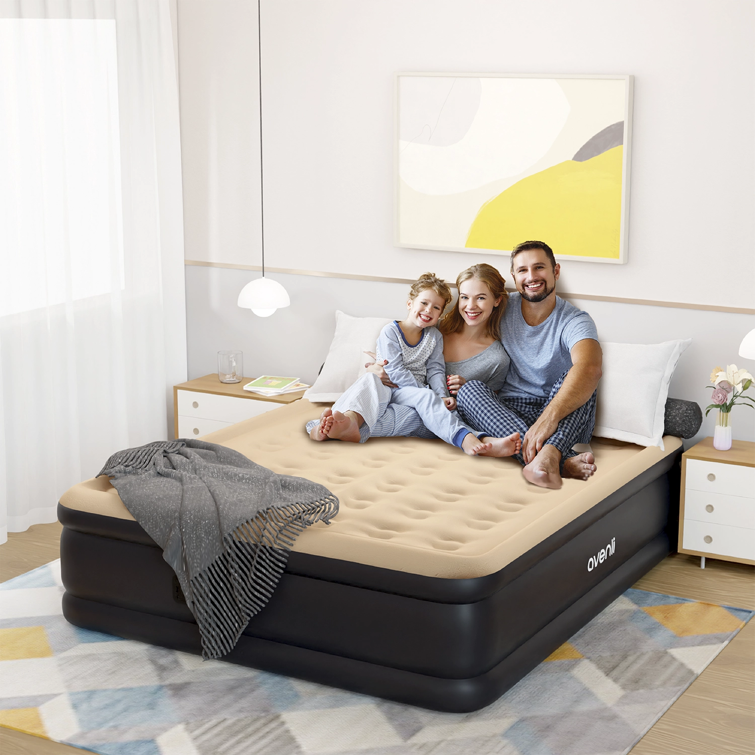 El Colchón Inflable Eléctrico Queen 2 Plazas está diseñado para ofrecer un descanso amplio, cómodo y práctico en cualquier lugar. Con su sistema de inflado eléctrico integrado (220–240 V), podrás tenerlo listo en pocos minutos, sin necesidad de bombas externas.