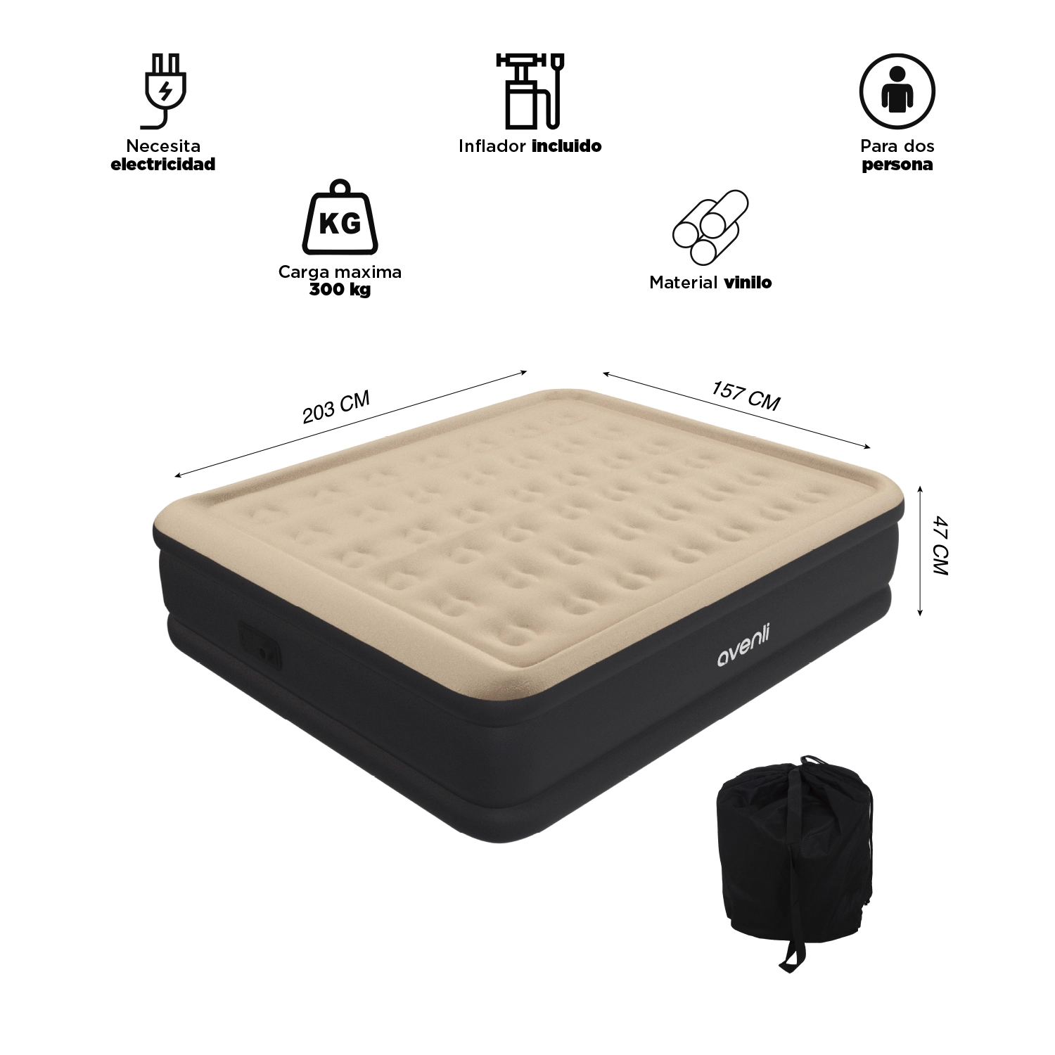 Su altura de 47 cm facilita subir y bajar, ofreciendo más confort que los colchones inflables convencionales.