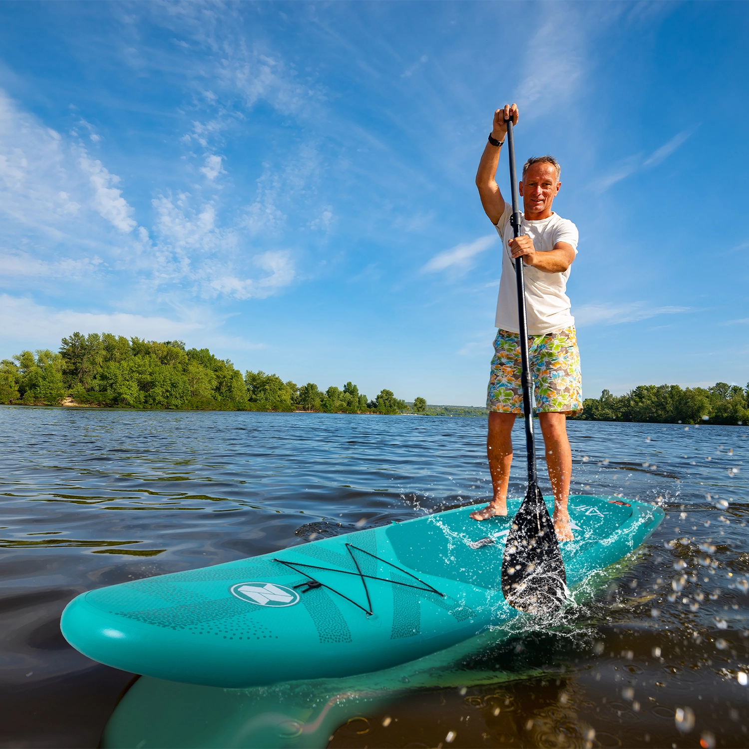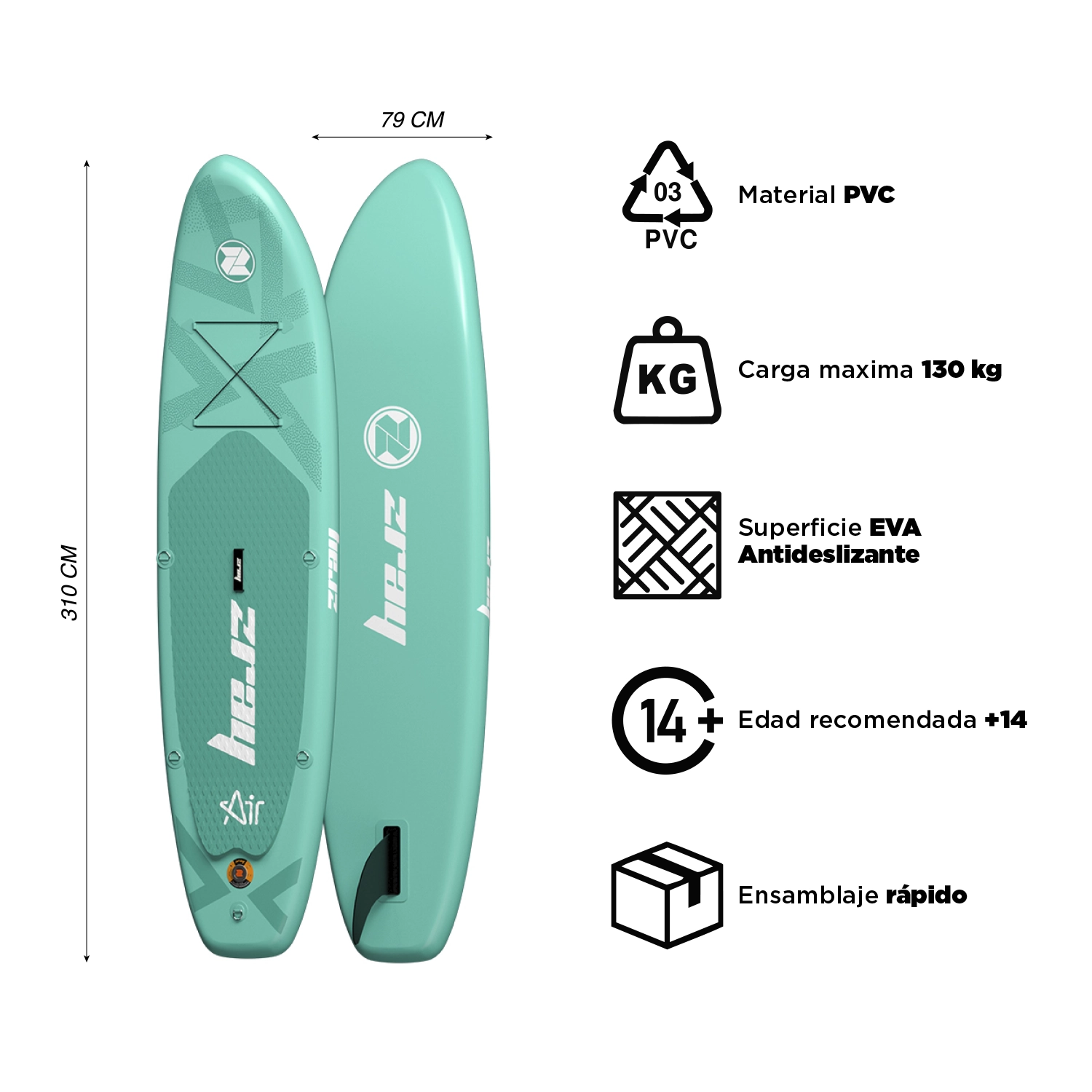 Con dimensiones de 310 cm de largo, 79 cm de ancho y 13 cm de alto, este modelo aporta mayor estabilidad y comodidad al remar. Su peso de 7,8 kg y capacidad de hasta 130 kg de carga la hacen adecuada para distintos niveles de experiencia. La aleta central proporciona un mejor control en la dirección y, con una presión de inflado de 15 PSI, obtendrás una rigidez similar a la de una tabla sólida.