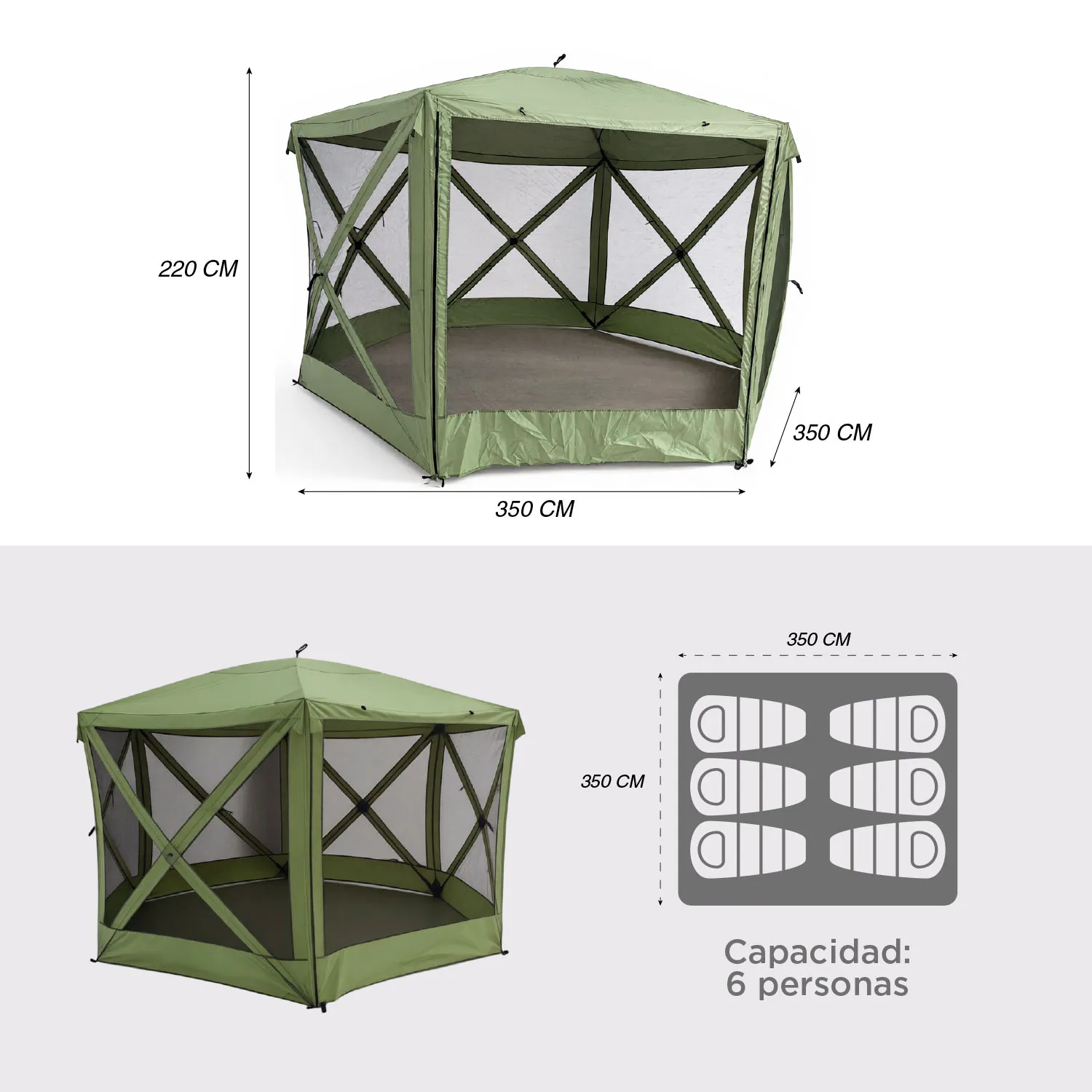 Toldo Camping Instantáneo 3.5m Impermeable 1000 mm C/Mosquitera