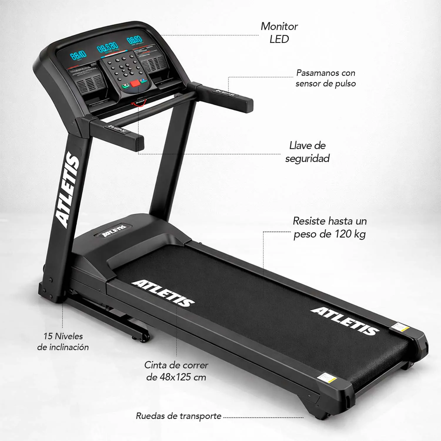 Trotadora SmartRun 900 18 km/h 3.0 HP Smartwatch es la opción perfecta para entrenamientos completos y personalizados en casa. Con un motor de 3.0 HP, permite alcanzar velocidades de hasta 18 km/h y ofrece 15 niveles de inclinación automática, simulando rutas reales para maximizar la efectividad del ejercicio. Su estructura robusta, fabricada en metal y plástico, garantiza durabilidad, estabilidad y soporte para usuarios de hasta 120 kg.
